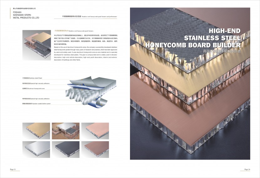 浙江不銹鋼蜂窩板面板為特殊加工工藝后的不銹鋼板,背板有多種選擇:不銹鋼板、鍍鋅板、鋁合金等,芯材是經(jīng)防腐處理的鋁蜂窩芯,通過專用粘結(jié)劑高溫高壓復(fù)合而成。不銹鋼蜂窩板既保留了不銹鋼的華麗裝飾質(zhì)感,還結(jié)合了蜂窩板高平整度與安裝強(qiáng)度的優(yōu)勢(shì),可滿足建筑外墻、內(nèi)墻,天花吊頂裝飾,自動(dòng)扶梯裝飾的需求。盛威斯特不銹鋼蜂窩板可實(shí)現(xiàn)大板面的裝飾效果(最大規(guī)格可實(shí)現(xiàn)長≤5000mm,寬≤1500mm),經(jīng)特殊加工工藝處理可實(shí)現(xiàn)拉絲、鏡面、著色、木紋等豐富多樣的裝飾效果,可滿足不同風(fēng)格的裝飾需求。