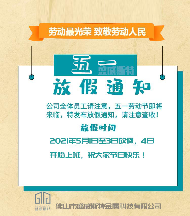 即將迎來一年一度的“五一”勞動節(jié),今年的調(diào)休假期可以算得上小長假了,至于放假回來的補班,就看各個公司的安排了。蜂窩不銹鋼板廠家盛威斯特金屬決定放假3天,沒有調(diào)休。是的,比其他調(diào)休放假5天的公司好多了。